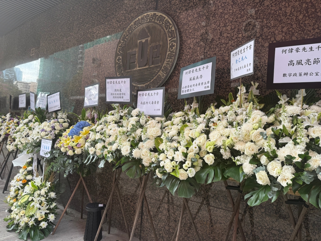 香港新聞網記者 譚暢攝 喪禮於上午10時開始,官方儀式在位於地下的靈堂內及殯儀館外舉行。當日,香港特區行政長官李家超、多位特區政府官員出席悼念。