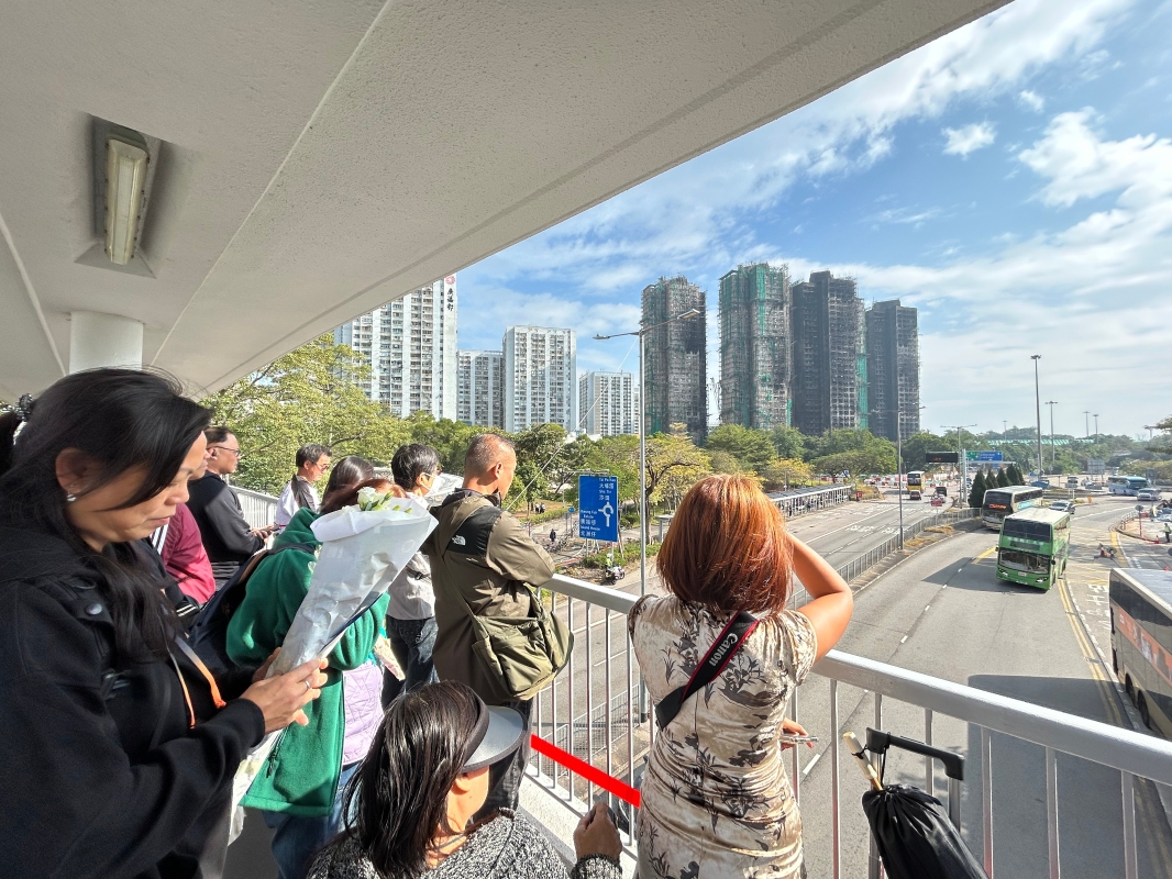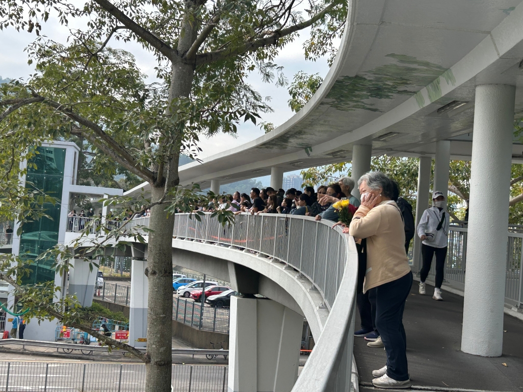 香港新聞網12月19日電(記者 徐嘉儀)香港大埔宏福苑火災中殉職的消防隊目(追授)何偉豪,消防處19日為他舉行最高榮譽喪禮。靈車其後到大埔宏福苑進行路祭。 喪禮在紅磡世界殯儀館舉行。儀式後,靈車離開殯儀館,經大埔太和路、寶鄉街、廣福道和大埔公路元洲仔段,抵達大埔宏福苑進行路祭。 當日氣溫和暖,陽光下,市民手持白菊,身穿素色衣服,分佈在大埔公路元洲仔段一帶天橋、路邊、巴士站等,等待殉職消防隊目何偉豪的靈車,送他最後一程。 上午約11時10分,在警車開路下,靈車緩緩駛入大埔公路元洲仔段,車頭擺放何偉豪的遺照,照片中他身穿消防制服,神情堅毅;車上的靈柩蓋上了特區區旗;車後方跟隨著消防工程組、救護車及親屬巴士等。 現場進行約六分鐘的儀式後,靈車在警方致敬下緩緩駛離。市民紛紛舉起白花,或將手放在胸前,目送車輛遠去,方才離開。有市民輕聲說“謝謝你,英雄”。