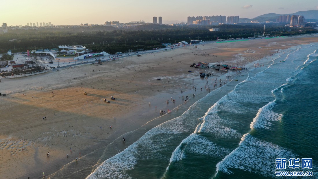 2024年10月14日,遊客在龍王頭海洋公園沙灘上游玩(無人機照片)新華網圖片