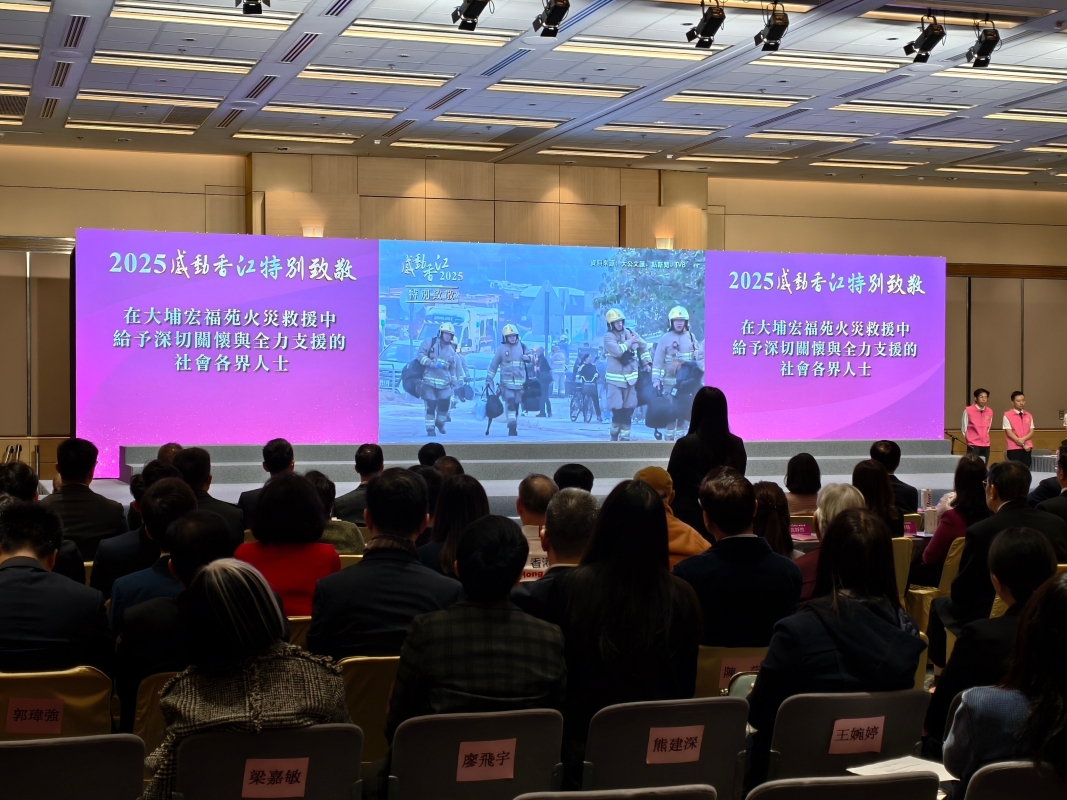 香港新聞網1月20日電 (記者梁嘉軒)“2025感動香江”頒獎典禮20日在香港會議展覽中心舉行。活動評選出6組“2025感動香江人物”,5個“2025感動香江團體”,並向在大埔宏福苑火災救援中給予深切關懷與全力支援的社會各界人士特別致敬。