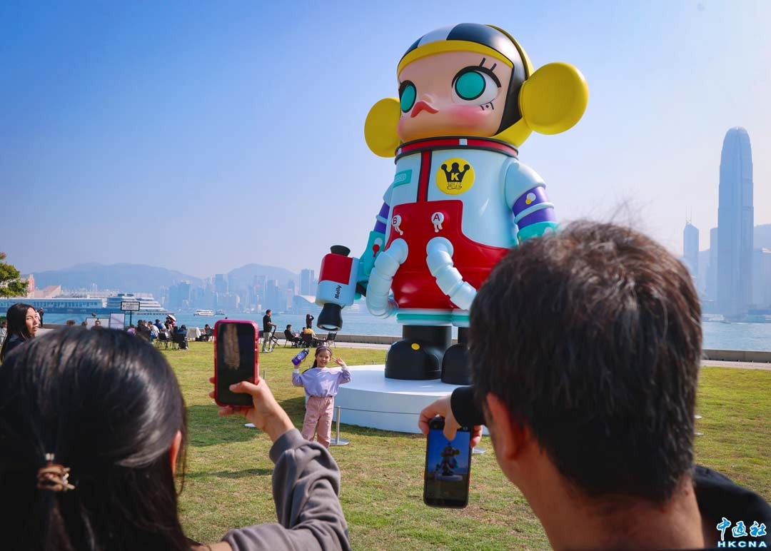 1月24日,中國內地潮流玩具公司泡泡瑪特旗下知名IP“Molly”的巨型裝置,在香港西九文化區亮相。該裝置是“Molly二十周年特展“的展品之一,吸引不少市民及遊客在裝置前拍照遊玩。(香港中通社記者 鄧梓傑 攝)