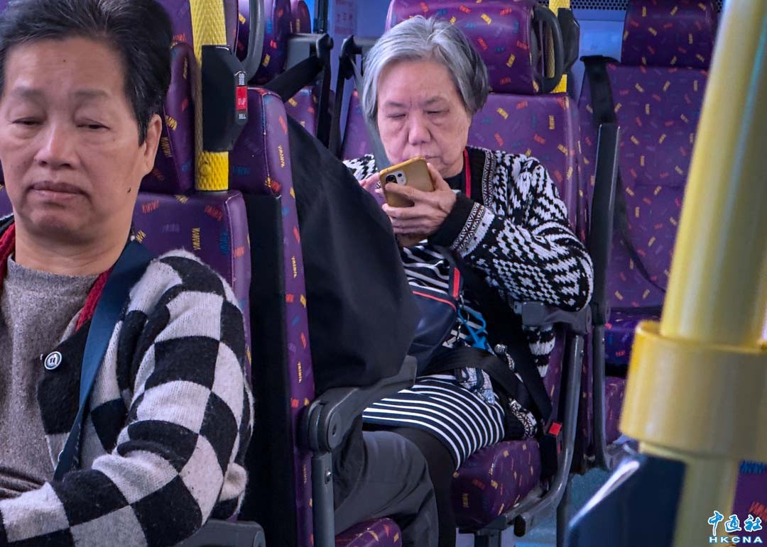 1月25日,香港安全帶新修訂規例即日起生效,所有公共交通工具及商用車座位乘客必須佩戴安全帶,如有違例,最高罰款5000元及監禁3個月。如果巴士座位已加裝安全帶,乘客必須全程佩戴。(香港中通社記者 鄧梓傑 攝)