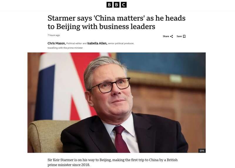 英國首相斯塔默於1月28日至31日對中國進行正式訪問(圖源:BBC) 修復與中國關係尋求更靈活的外交路徑 記者:在特朗普對歐洲盟友持續施壓的背景下,您如何看待斯塔默此次訪華之行? 劉麗榮:當前全球地緣政治動盪,美國政策正成為影響世界秩序的風險因素之一。圍繞格陵蘭島問題的分歧,也令英美特殊關係出現裂痕。斯塔默此次訪華,旨在修復與中國的關係,尋求更為靈活、獨立的外交路徑,以減少英國在戰略和經濟上對美國的過度依賴。 相較於中德關係和中法關係,中英關係在過去八年間陷入低谷。受美歐等外部因素及英國國內政治影響,英國對華政策呈現搖擺,未能在合作與競爭中找到具戰略性的平衡點。近年來,英國經濟增長乏力,社會福利與移民問題凸顯。斯塔默出任首相以來,一直將重塑中英關係作為主要任務,強調對華接觸與合作。此次率商界領袖代表團訪華,主要目的是尋求可控的重新接觸,改善中英貿易與投資環境。 近期多位西方政要訪問中國,成果不盡相同,有的達成實質合作,有的更具象徵意義。時隔八年,英國首相再度訪華,無論成果如何,均有助於加強兩國對話接觸、增進政治互信,促進中英關係健康穩定發展。 中英有望促成多領域具體合作 記者:此次斯塔默率50餘家英國大企業高管和機構代表隨訪,涵蓋金融、醫藥、製造業、文化、創意等英國優勢領域,體現了英方對深化雙邊經貿關係的期待。訪問期間,商務部擬與英方簽署貿易投資合作成果文件,力圖打造中英經貿合作新增長點。您認為,中英在哪些方面將最有“合作火花”? 劉麗榮:經貿合作是斯塔默此訪的核心議題。斯塔默希望通過加強中英經貿關係助力英國經濟,從而一定程度上平衡對美國的依賴。中英互為重要貿易夥伴,但受全球經濟增速放緩及英國國內需求疲弱等多重因素影響,2023年至2024年,雙邊貿易額出現明顯下滑,2025年略有企穩回升;從貿易結構看,英國對華出口波動更大。在投資領域,雙邊跨境直接投資雖保持增長,但總體規模仍相對較小,有較大提升空間。 中英雙方此次有望簽署一系列貿易與投資合作文件或協議,可能涉及市場准入、行業合作框架、投資便利化等內容。隨斯塔默出訪的商務領袖代表團成員,來自金融、醫藥、製造業、文化創意產業等多個英國競爭力較強的行業。此外,兩國可望邀請大型企業參與對話和項目對接,促進中英在以下產業的具體合作:製造業及高端裝備、醫藥與生命科學、金融服務與綠色金融、能源與基礎設施、創意產業與文化出口等。