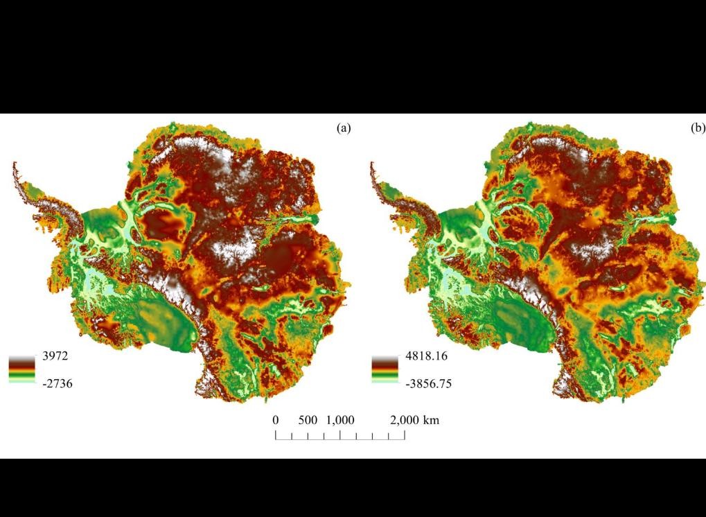 南極冰下地形高程圖。(中國極地研究中心供圖) 冰下火山形態參數分析表明:火山高度介於100米-4181米,體積介於1立方公里-2800立方公里,基底寬度介於0.3公里-58公里,平均坡度中位數約8.1度。陡坡多集中於火山頂部區域,坡度差異與噴發方式、火山岩性等相關。 相關研究成果已發表在國際權威期刊《地球科學評論》(Earth-Science Reviews)。(完) 【編輯:張麗欣】