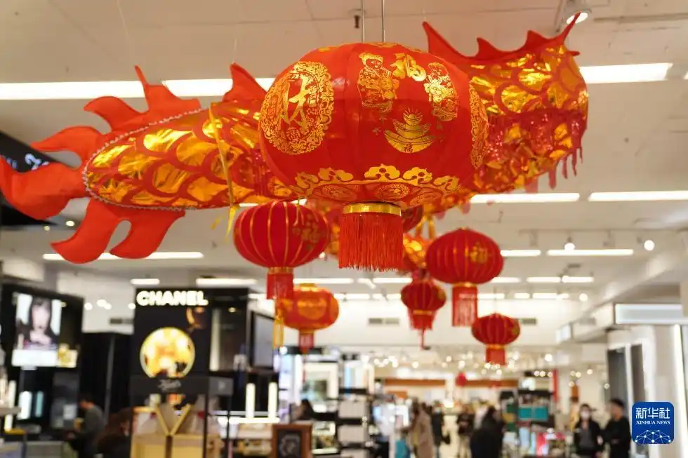 這是2月4日在美國紐約皇后區法拉盛一家商場內拍攝的春節裝飾。圖片來源:新華社