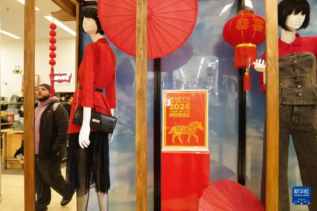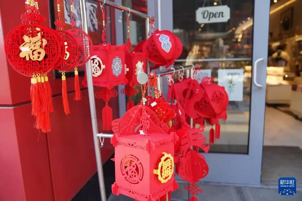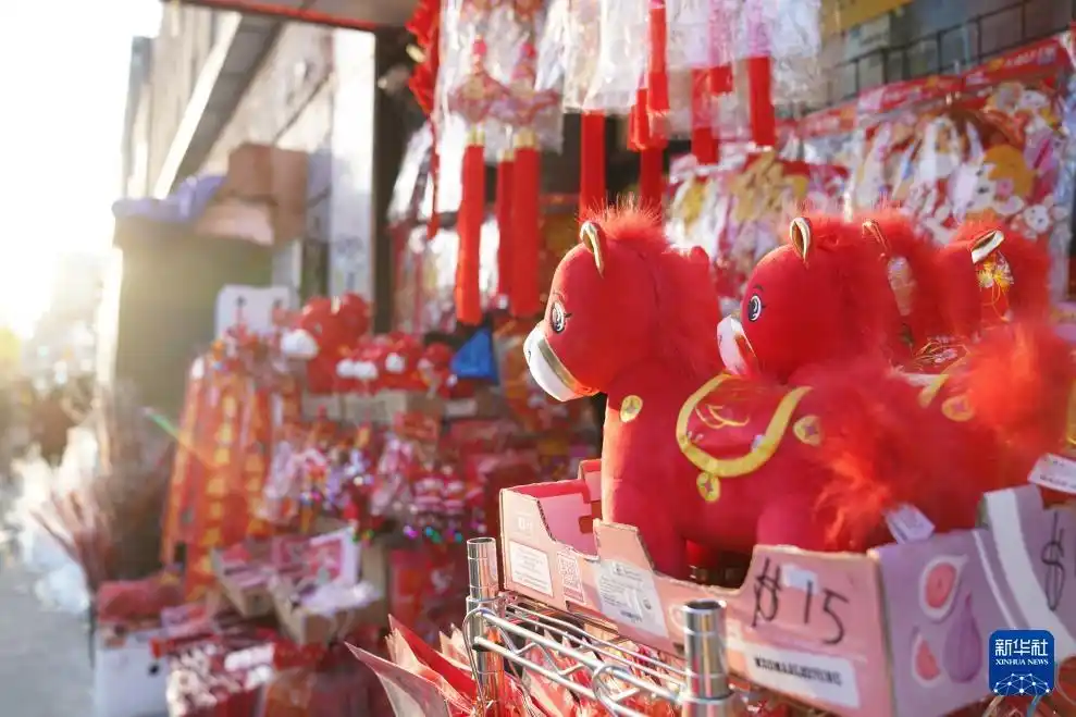 香港新聞網2月6日電 近日,在美國紐約皇后區法拉盛,春節主題裝飾和商品在一些商場和街邊商鋪出現,增添了喜慶的節日氛圍。
