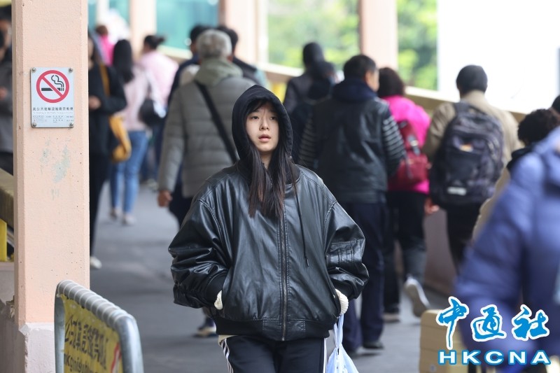 2月8日,香港氣溫明顯下降,市民穿冬衣出行。香港中通社資料圖