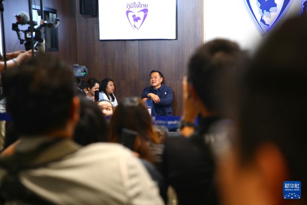 2月8日,泰國看守政府總理、自豪泰黨黨首阿努廷(前左二)在曼谷出席新聞發佈會。新華社記者 萬後德 攝 為泰黨黨首朱拉汶在當晚召開的新聞發佈會上稱,該黨尊重民眾選擇,無論作執政黨還是反對黨,都將會盡職盡責為民眾工作。 另外,根據泰國選舉委員會初步計票結果,參與投票的過半泰國民眾同意修改憲法。按照泰國法律,國會將啟動修憲程序,以新憲法取代2017年由軍方主導制定的現行憲法。 (完)