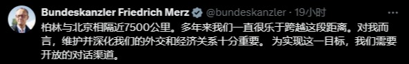 默茨首訪北京 中德經貿能否再啟新程?香港中通社2月25日電(香港中通社記者 葉永成)2月25日,德國總理默茨抵達中國北京,展開其就任以來首次對華正式訪問。默茨此行率領一支由約30位德國頂尖企業高管組成的高規格經貿代表團,涵蓋大眾汽車、寶馬、奔馳、西門子、拜耳、阿迪達斯、漢高、DHL及德國商業銀行等行業龍頭。德媒稱此為“默克爾時代以來規模最大”的隨訪商團,凸顯德方深化對華經貿合作的強烈意願。