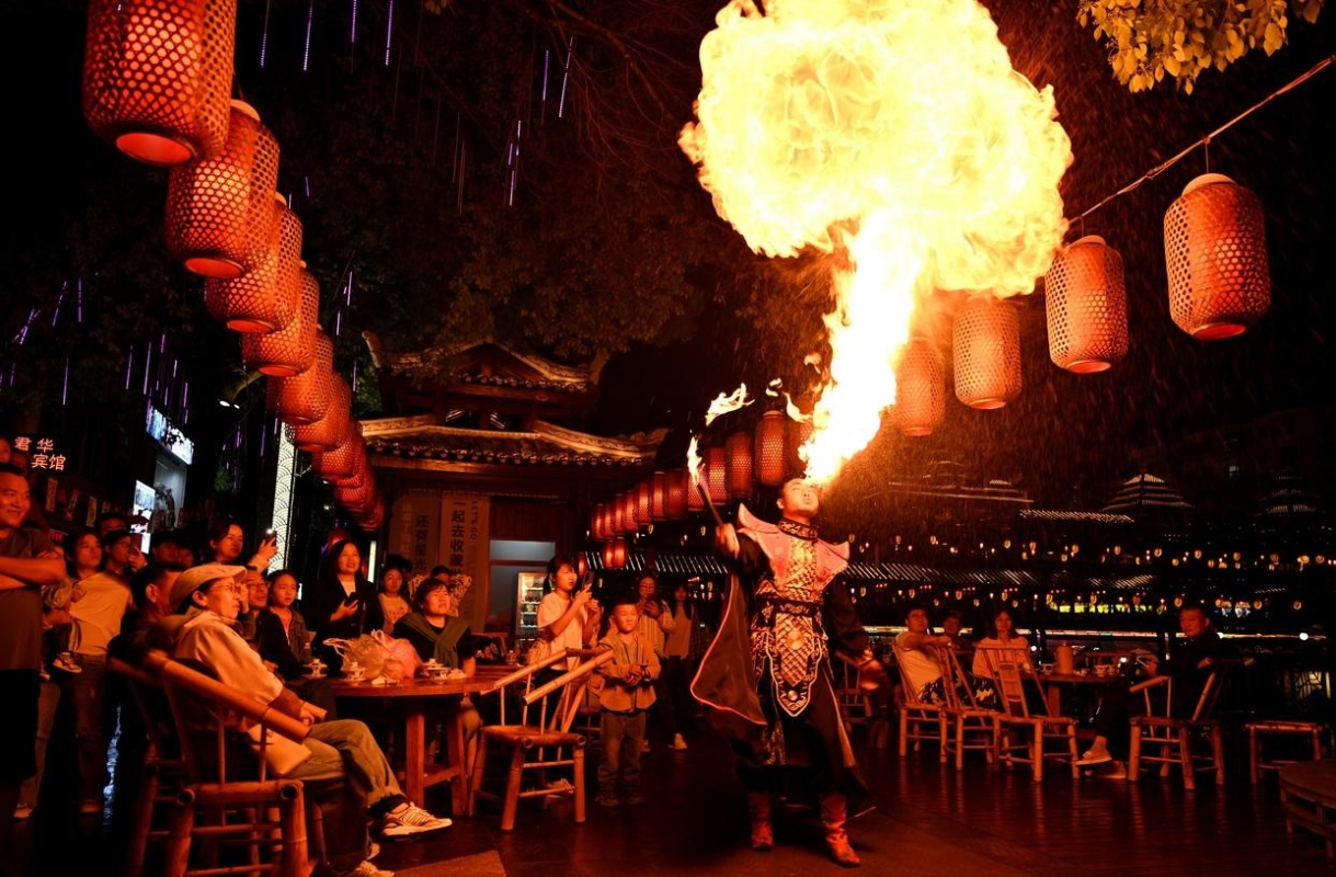 2025年5月4日,遊客在湖北省宣恩縣城貢水河畔觀看吐火表演。新華社資料圖 從產業結構看,服務業繼續發揮主引擎作用。第三產業增加值為808879億元,增長5.4%,佔GDP比重達57.7%;第二產業增加值499653億元,增長4.5%,佔比35.6%;第一產業增加值93347億元,增長3.9%,佔比6.7%。現代化產業體系建設穩步推進,新質生產力加快成長。 從需求側貢獻看,內需基礎持續夯實。最終消費支出對GDP增長貢獻最大,拉動2.6個百分點;貨物和服務淨出口表現亮眼,拉動1.6個百分點;資本形成總額拉動0.8個百分點,顯示外需與消費成為穩增長雙支柱。 季度走勢方面,經濟增速逐季小幅回落但仍保持韌性:一季度同比增長5.4%,二季度5.2%,三季度4.8%,四季度4.5%,整體呈現平穩下行但不失穩的態勢,反映宏觀政策有效對沖外部壓力。 其他關鍵指標同步改善。全年人均GDP達99665元,增長5.1%;國民總收入為1393700億元,亦增長5.1%;全員勞動生產率達每人184413元,同比提高6.1%,顯示經濟效率與居民福祉同步提升。(完) 【編輯:馬華】