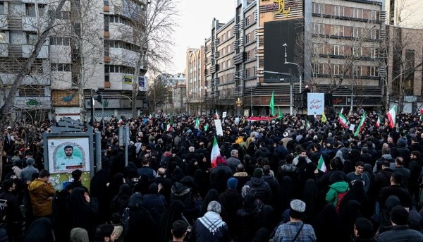 2026年3月1日,民眾在伊朗首都德黑蘭集會,哀悼伊朗最高領袖哈梅內伊。新華社圖