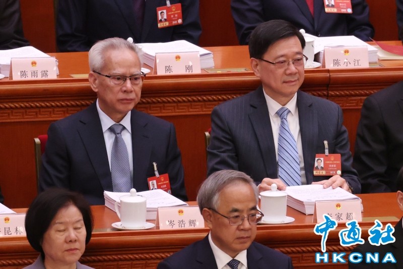 香港中通社北京3月5日電(香港中通社記者 徐嘉儀/崔隽)中國十四屆全國人大四次會議3月5日在北京開幕,港澳特首列席會議,期間認真做筆記,會後頻頻互動。