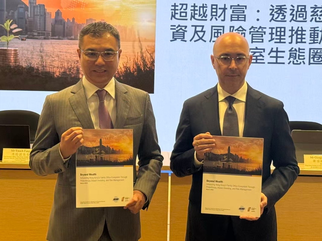 (香港中通社記者 譚暢攝) 報告對101個受訪機構及35位業界人士進行訪談。報告指出,香港被廣泛視為家辦重要投資目的地,91%受訪者已有在港投資;雖然股票及固定收益仍是資產配置的主流,兩者分別佔91%及79%,但家辦對另類投資興趣漸濃,未來三年平均34%受訪者計劃增加在私人市場的投資配置。 其中,慈善事業及影響力投資崛起,報告指家辦將持續深化兩者的佈局,預期未來三年參與慈善事業的受訪者比例將由現時的45%增至64%,參與影響力投資的比例將由30%增至43%。 對風險管理的需求方面,報告指香港是風險管理的首選地點,香港備受青睞的原因之一是能夠供應具競爭力的風險管理產品及服務。報告料在港購買風險管理產品及服務的需求日益增長,預計未來三年,購買及投資該領域的受訪者比例將由現時的54%升至78%。 此外,逾八成受訪者表示,現時人才資源足以應付日常營運所需;家辦招聘方面,對家族管治、創新及科技等專業技能的需求持續上升。(完) 【編輯:馬華】