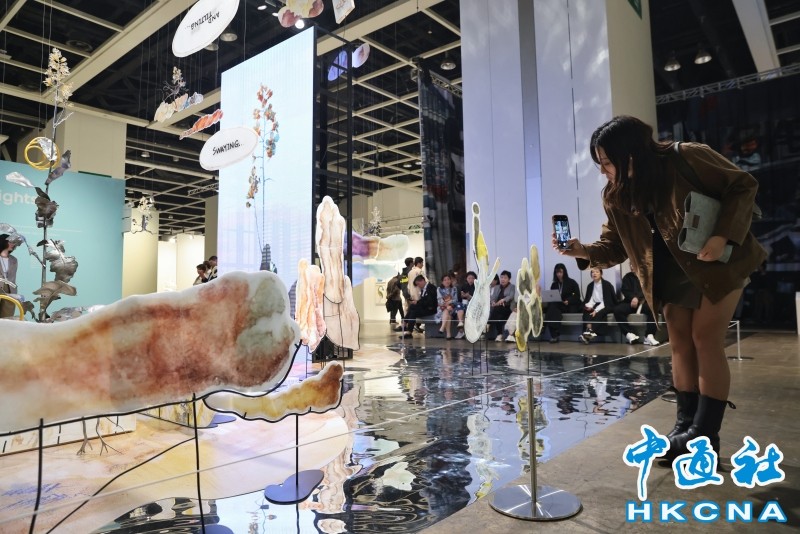 香港中通社圖片 觀眾可戴上AR裝置,通過動態捕捉及空間模擬技術步入“鏡”中世界,在場地自由漫步,近距離欣賞坂本龍一彈奏《聖誕快樂,勞倫斯先生》等電影經典配樂。 藝術三月不僅是國際盛宴,也是本土創作者的舞台。由香港藝術中心策劃的“珍藏香港”藝術博覽匯聚超過530位本地藝術家作品,是城中唯一聚焦本地藝術家的博覽,同期還設攝影書展。有本地藝術家更以針線“縫”出畫作,帶來不同的藝術呈現。 在香港街頭巷尾,各式公共藝術裝置,也讓美學融入城市的呼吸。作為“西九家FUN藝術節”的其中一部分,西九文化區海濱草坪於3月19日迎來英國巨型貓咪的首度海外亮相,Air Giants團隊打造《夢遊喵境》巨型裝置,其尾巴可以隨著聲音、燈光的互動而輕輕擺動,遊客亦能輕撫貓身。 首屆Central Yards中環藝嚐展亦帶來全新的“可食用”藝術體驗,香港本地藝術家將藝術和創意美食結合,在中環海濱帶來沉浸式感官旅程;潮流文化盛事ComplexCon香港站,則將於3月21日至22日登陸亞洲國際博覽館,更有盲盒“The Monsters”及“LABUBU”元素融入會場設計。Jay Park、Yeat等國際明星將帶來精彩演出,為全球青年藝術文化帶來新的碰撞。 從維港兩岸到社區深處,2026年的香港藝術三月正以多元姿態向世界展示,藝術不僅可觀可感,亦可品味、可觸摸。“藝術三月”,已成為這座城市打動人心的春日盛事。(完) 【編輯:李濼】