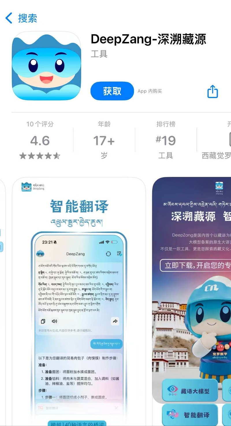 “DeepZang”APP應用商城頁面截圖 綜合報道,DeepZang由西藏覺羅數字產業管理有限公司自主攻關研發。當天發布會上,創始人旦增羅布介紹,DeepZang支持藏、中、英三語智能交互,集成AI對話、實時翻譯和語音轉寫等功能。目前,模型已積累國家標準藏語平行語料近7000萬條,藏語三大方言語音語料共超過30500個小時,約為衛藏10500小時、康巴10000小時、安多10000小時。 據悉,該開源大模型平台是中國首個面向多語種、多模態的民族語言AI開放平台,支持80餘種語言服務,實現“聽、說、譯、看、思”功能。 發布會上,世界紀錄認證機構(WRCA)現場為其頒發“世界首個藏語大語言模型”認證證書,確認其全球首創地位。 發布會同步完成多項產業合作簽約。中國移動西藏分公司、中國人保財險西藏分公司、四川民族出版社等單位與覺羅數字簽署戰略合作協議,共同推動藏語AI在政務、教育、文化、醫療等領域的落地應用。(完) 【編輯:彭玉婷】