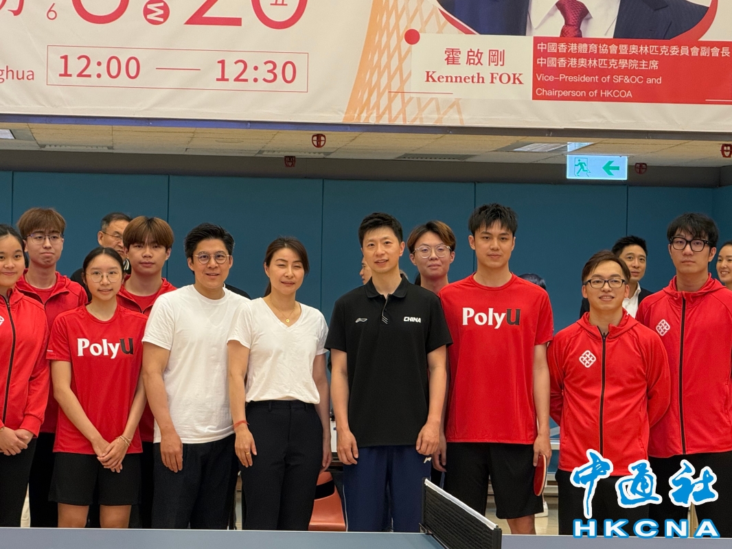 香港新聞網3月20日電(記者 譚暢) 中國國家隊乒乓球運動員、六面奧運金牌得主馬龍20日現身香港理工大學賽馬會綜藝館,瞬間引爆全場!馬龍更與郭晶晶、霍啟剛夢幻聯動,分別切磋球技。