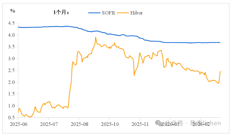 中東地區貨幣匯率波動。(圖源:東吳證券) 那麼,一直流傳的中東資金進入香港是真的嗎? 從新聞報道來看,3月以來,沙特主權財富基金(PIF)宣布在中環增設亞太總部,并注資10億美元成立專項科技直投基金;阿聯酋穆巴達拉投資公司(Mubadala)領銜的財團,以基石投資者身份大筆認購了洲際航天科技IPO。香港投資推廣署,在3月底說,過去兩年香港新增了680家家族辦公室。其中相當比例來自中東王室或富裕家庭。 東吳證券發佈數據表示,可以明確的是,資金進入香港的痕跡在金融數據中清晰可見。最直接的證據不在新聞頭條,而在港元利率與美元利率的“背離”中。 根據2026年3月的最新數據,在美聯儲由於通脹壓力和戰爭預期而維持3.5%—3.75%高利率的背景下,港元利率并未被動跟隨,反而出現了明顯的下行。1個月HIBOR從3月初的2.36%逆勢下探至1.95%左右。這種“美高港低”的利差倒掛,只能解釋為非季節性的大規模外部增量資金湧入了香港銀行系統,導致本地流動性嚴重過剩。