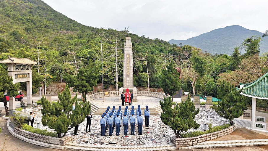 駐香港部隊官兵代表赴香港抗日英烈紀念碑開展瞻仰祭掃活動。 中國人民解放軍駐香港部隊官方微信公眾號“香江礪劍”圖片 烈士紀念園裡,抗日英烈紀念碑巍然矗立,參加活動的駐香港部隊官兵代表軍容嚴整、莊嚴肅穆。 大家仔細清掃紀念園區、擦拭紀念碑,向革命先烈敬獻花籃、默哀致敬,瞻仰烏蛟騰抗日英烈紀念碑、斬竹灣抗日英烈紀念碑和劉春祥抗日英雄群體紀念碑,感悟先烈們的愛國情懷與民族氣節,汲取投身強國強軍事業的奮進動力。