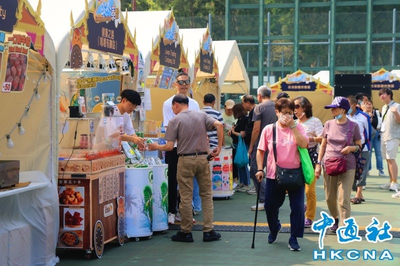香港中通社4月11日電(香港中通社記者 張明臻)4月11日,還未走進賈炳達道公園,水花炸裂聲與歡聲笑語就已遠遠傳來,香港九龍城一年一度的潑水節在萬眾期待中正式開幕。 記者下午到場,市民遊客手持水槍、水桶,甚至拿起水瓢,湧進籃球場化身“水戰戰士”。活動一開始,場內迅速進入“混戰”狀態,泳鏡、雨衣是標配,水槍射程遠者占盡先機,但提著水桶“近身突擊”更顯戰術。 活動從街道移師籃球場,雖縮小了範圍,卻讓“戰況”更集中、更激烈。今年共設9場,每場45分鐘,市民須預先報名。然而現場人氣爆棚,第二場開賽前候補區已有數十人排隊候補。 來自巴基斯坦的Ilays攜兩個兒子首次前來,他對記者表示,曾帶兒子去泰國旅遊時感受過潑水節,但在香港還是第一次參與,非常期待;希望在香港的巴基斯坦人也能常規性的舉辦民俗活動。有74歲長者專門跨區前來,開心地表示見到小孩子玩的開心心情就很好,認為活動改在籃球場比街道舉辦更安全。 現場同步設有超過50個攤位的美食嘉年華,榴蓮、芒果糯米飯、泰式串燒、木瓜沙律香氣四溢;還有泰式按摩、泰國服飾等體驗區;更搭建起大型擂台,邀請泰國專業團隊帶來泰拳及傳統歌舞表演。前來參與的市民與路過遊客直呼好似身在曼谷。