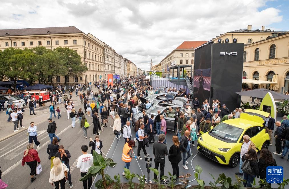 2025年,在德國慕尼黑,人們在慕尼黑國際車展戶外展區比亞迪展區參觀。(圖源:新華社)