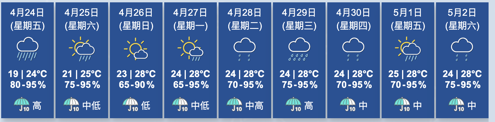 展望未來一兩日,25日早仍然稍涼,驟雨減少。隨後一兩日部分時間有陽光。下週中期天氣不穩定。(完)
