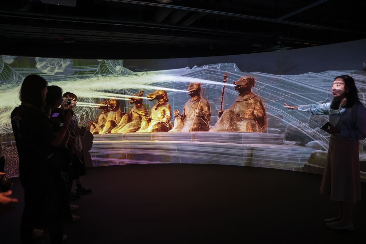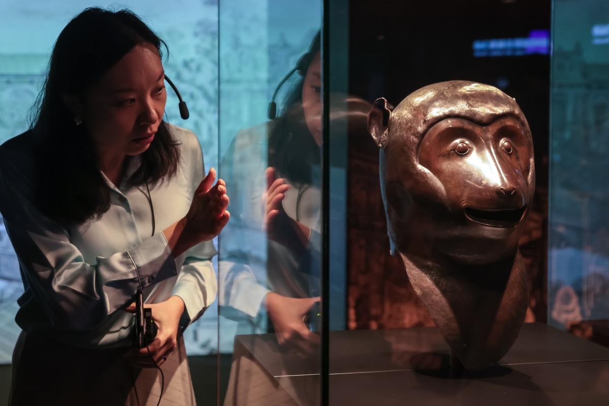 香港中通社7月4日電 (譚暢)香港城市大學般哥展覽館4日推出“盛世聚首 天寶芳華:圓明園獸首暨文物展”,展出圓明園海晏堂中虎、豬、牛、猴四尊獸首銅像原物。