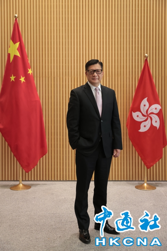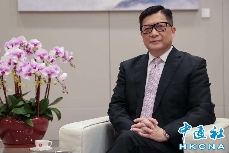(香港中通社記者 謝光磊 攝) 香港中通社圖片 在推動青少年國家安全教育工作方面,特區政府聯合各部門組織全港學界國家安全常識挑戰賽,逾580間學校超十萬學生參加;香港國安法網上虛擬展覽,目前近60萬人次曾瀏覽學習。 香港少數族裔人口約佔本地總人口8%,如何加強他們的國安意識?鄧炳強提到,警隊一直有“寶石計劃”、“喜馬拉雅計劃”,目的是幫助少數族裔融入社群,并通過活動向他們解釋國安意識或身份認同意識,令他們感覺自己就是香港的一部分,在各方面都應有責任。 這些方式有效嗎? “很有效。”鄧炳強肯定地回答。他舉例在維護國家安全條例公眾諮詢期收獲98.6%的社會支持。下一步,他將把條例解說工作融入到國安推廣工作中。 現今地緣政治緊張,外部勢力常借意干預國家及香港特區事務,說三道四,甚至公然傳遞錯誤信息。
