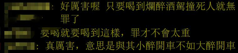 台媒報道截圖 據台灣中時電子報昨日(3日)報道,去年12月22日中午,有酒駕前科的台南市市民黃女士在朋友家喝完紅酒後,下午6點去接小孩放學回家。回家路上發生了兩次追撞事故,第一次,她撞上了前面的電瓶車導致程姓母女二人受傷,但黃女士沒有下車救護,繼續行駛,到了第二個路口後,她又追撞了一輛私家車後才停下。 警方到場處理時,發現黃女士的精神狀況不佳,經送醫抽血檢驗,其酒精濃度高達1.55毫克。按照台灣的相關規定,汽車駕駛人飲用酒類或其他類似物後吐氣所含酒精濃度不能超過每公升0.15毫克,血液中酒精濃度不能超過0.03%。從這個數據來看,黃女士的確飲酒過量。 隨後,警方將此案移送台南地檢署偵查後,檢方依公共危險罪、肇事逃逸罪等對黃女士提起公訴。 庭審時,黃女士曾稱,事發時,她只是對紅燈、剎車燈有紅色燈光反應時,才下意識剎車停下來,真的不知道撞到了人發生了車禍。輔英科技大學附設醫院也發函回復法院表示,事發時,黃女士血液中的酒精濃度達到0.311%,由此推斷,案發當時黃女士確實有可能因飲酒過量意識不清,導致對周圍事務的辨識及反應能力降低,因此對於肇事的過程並不清楚。 昨天,此案一審結束,法院認定,黃女士所說案發當時因醉酒不知道撞到人,並非全然不可採信,因此被控肇事逃逸部分判決無罪。 在台灣,酒駕的入刑標準是;吐氣所含酒精濃度達每公升0.25毫克或血液中酒精濃度達0.05%以上,判2年以下有期徒刑,罰款不超過20萬新台幣(約合人民幣4.6萬元),黃女士的飲酒量遠超這個標準,法院認定其涉公共危險罪,但只判4個月。 昨天,此案在島內社交媒體引發群嘲,“看來以後要麽不喝,要麽就大醉,反正都無罪”“要喝就得喝成這樣,罪才不會太重哦”“喝酒了+肇事逃逸,反正無罪,那我們是不是得給當事人說一句‘您辛苦了’?” 台媒也嘲諷“法官喝醉了”。