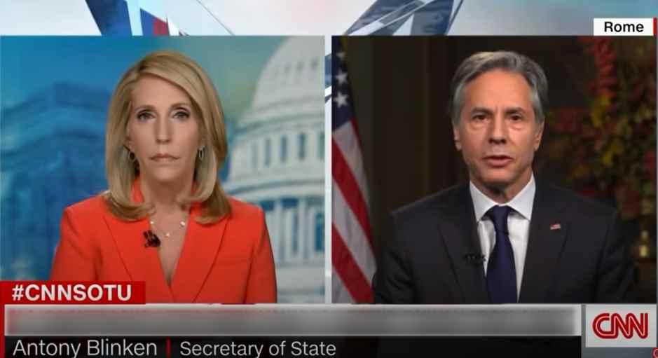 美國東部時間10月31日,CNN追問“美國是否保衛台灣”,布林肯(右)打太極。來源:視頻截圖