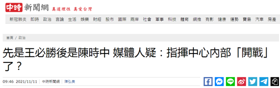 台灣“中時新聞網”報道截圖 “中時新聞網”韋安今天在臉書發文表示,“奇怪”,防疫指揮中心內部有“網民”?先是王必勝緋聞被爆,昨天夫妻才接受專訪並澄清,後是陳時中高歌暢飲的視頻流出,旁邊的女性也有點奇怪,韋安質疑,難道指揮中心內部全面“開戰”了? 對此,也有不少網友表達相同觀點,有網友表示,“開始內鬥卡位了”“是開幹了”。↓
