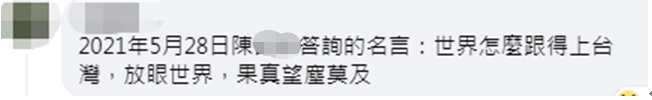 《亞洲周刊》臉書帖文 帖文發出後不久,吸引不少網友在下方的評論區留言,有人諷刺稱,“2021年5月28日‘陳部長’答詢的名言:世界怎麽跟得上台灣,放眼世界,果真望塵莫及。”