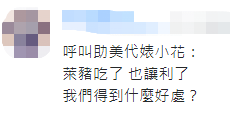 還有人呼叫“助美代表”:“萊豬(含瘦肉精的美豬)吃了,也讓利了,我們得到什麽好處?”