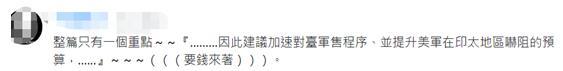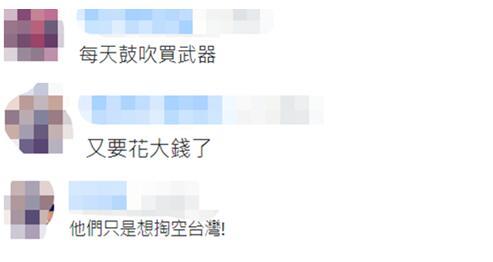 還有網友說,美國鼓吹民進黨當局買武器,其實“只是想掏空台灣!”↓