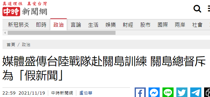 台媒報道截圖 報道稱,台海軍陸戰隊派遣排級單位赴關島協訓,因美國防部及台防務部門均未否認,消息被多家英文媒體引用,但是數日後關島官方正式予以否認。當地《關島郵報》(The Guam Daily Post)引述格雷羅的話稱,關島駐地美軍官員已否認此事,相關報道是一則刻意制造的“假新聞”(fake news)。 台媒援引《關島郵報》稱,國際媒體刊載有關台灣海軍陸戰隊在關島訓練的消息,美國防部一直保持沈默,但關島總督獲美國防部官員告知此為“假新聞”。 報道說,本月稍早有媒體刊出消息後,台防務部門負責人邱國正似乎有意要證實媒體傳聞,即約40名台灣海軍陸戰隊成員在關島,而且五角大廈接受媒體詢問時未否認這些報道。 《關島郵報》報道提到,美國駐夏威夷印太司令部尚未回應該媒體置評的請求,印太司令部公共事務辦公室則稱不對這些報道發表評論。格雷羅對《關島郵報》說,她在與美國防部官員的談話中確認,關島目前沒有看到任何有關台灣演習的活動在這裏發生。 聽聞這一消息,一些島內網友紛紛到台媒評論區留言表達自己的看法。 “這下尷尬啦!到底信誰啊。”有網友寫道。