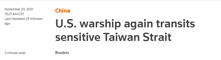 根據路透社報道,美國海軍宣稱“米利厄斯”號導彈驅逐艦是“依據國際法例行性過航台灣海峽”,“通過國際水域”,並再次渲染所謂美國對“自由開放的印太地區的承諾”。
