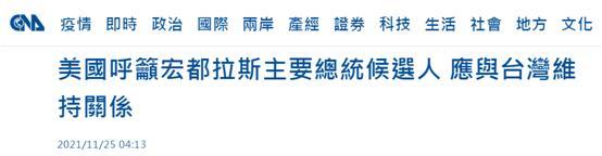 台灣“中央社”報道截圖 據台灣“中央社”報道,洪都拉斯左翼主要反對黨“自由與重建黨”總統候選人克希瑪拉·卡斯特羅將在28日大選對決執政黨“國民黨”候選人阿斯夫拉,上月民調顯示,卡斯特羅有兩位數的領先優勢。洪都拉斯是台當局僅剩的15個“邦交國”之一,今年以來有關雙方關係不穩的消息不時傳出。台灣“中央社”報道稱,卡斯特羅先前曾表示,若贏得大選,將和中國大陸建立外交關係,與台灣“斷交”。報道聲稱,卡斯特羅的親近幕僚說,他尚未針對是否與台灣“斷交”、轉而承認中國大陸做出最後決定。 台灣“中央社”提到,在此期間,美國國務院西半球事務局助卿尼可拉斯已領導代表團造訪洪都拉斯。美國國務院官員在電話簡報中聲稱:“我們已向洪都拉斯所有主要(總統大選)參與者明確表達,為何我們認為台灣及洪都拉斯間關係相當重要。”這名官員提及前述會議時聲稱:“我們想要看到那(”台洪關係“)持續下去。我們已直接告訴兩位主要候選人。” 美方此前不斷操弄台灣問題。對此,中國駐美大使秦剛曾表示,美方企圖“以台制華”,這必將搬起石頭砸自己的腳。 11月13日,全美中國和平統一促進會聯合會2021年年會在美國舊金山召開,中國駐美國大使秦剛以視頻方式致賀。秦剛在致辭中表示,當前,台灣民進黨當局煽動兩岸對立,勾連外部勢力,不斷進行謀“獨”挑釁,正一步步把台灣民眾裹挾上“台獨”戰車。這些行徑嚴重損害中華民族根本利益和台灣同胞切身利益,嚴重危害台海和平穩定。我們加倍努力推動兩岸融合發展,但絕不承諾放棄使用武力,保留采取一切必要措施的選項。 秦剛表示,美方不斷操弄台灣問題,企圖“以台制華”,這必將搬起石頭砸自己的腳。我們敦促美方恪守一個中國原則和對中方所作的承諾,謹慎妥善處理台灣問題,警防台灣問題導致中美衝突和對抗。 【編輯:俞丹鳳】