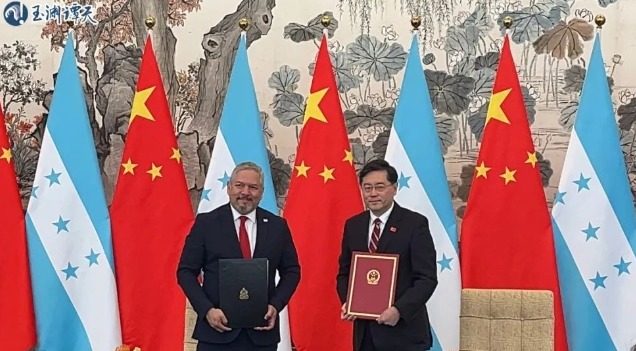 台灣“中央社”消息稱,美國國務院資深官員24日透露,一個前訪的美國代表團已向洪都拉斯總統大選兩位主要候選人表明,美國希望洪都拉斯與台灣維持雙方的長期“外交關係”。中國駐美大使秦剛此前曾表示,美方不斷操弄台灣問題,企圖“以台制華”,這必將搬起石頭砸自己的腳。
