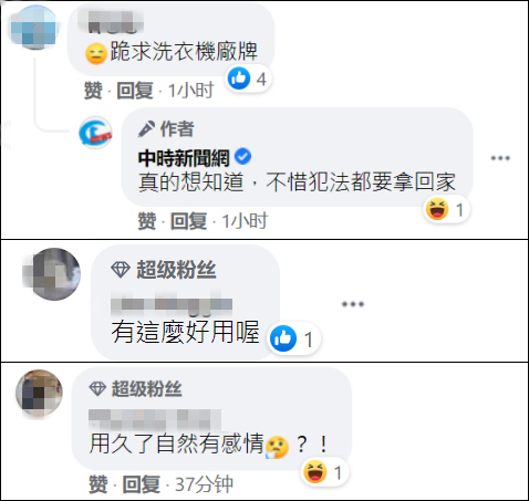 還有人調侃,洗衣機“有這麽好用哦”,不惜犯法都要拿回家,蹲一個品牌名。