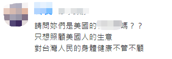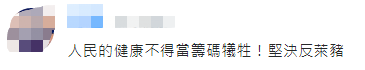 還有人表示“堅決反萊豬”,並稱“人民的健康不得當籌碼犧牲!”“請問你們是美國的‘行政院’嗎?只想照顧美國人的生意對台灣人民的身體健康不管不顧。”
