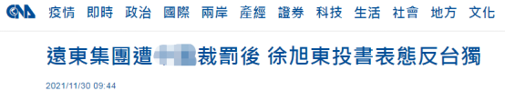 台媒:台遠東集團在大陸被依法查處後,董事長徐旭東投書表態反對“台獨”分享到: