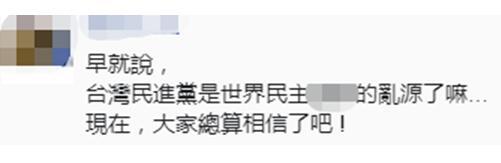 “早就說,台灣民進黨是世界民主國家的亂源了嘛…現在,大家總算相信了吧!”有網友留言道。