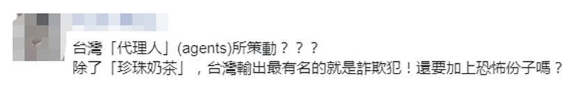 有人問,“除了‘珍珠奶茶’,台灣輸出最有名的就是詐欺犯!還要加上恐怖分子嗎?”