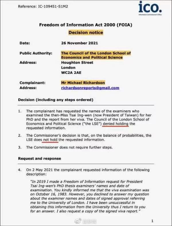 ▲倫敦政經學院面對英國高等行政法院的調查時,“否認持有”蔡英文的博士論文口試委員及口試報告。 實際上,蔡英文“論文門”事件沸沸揚揚已經兩年,就在上周,有了最新突破:蔡英文的母校——倫敦政經學院,面對英國高等行政法院的調查時,“否認持有”蔡英文的博士論文口試委員及口試報告。“口試”就是我們常說的“論文答辯”,是取得博士論文的必經之路。也就是說,蔡英文沒有“論文答辯”。 這意味著什麽呢?