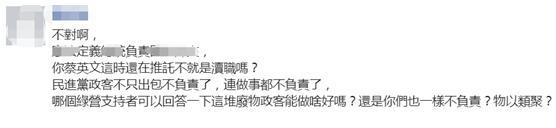 還有網友表示,這是民進黨當局“有功我的,有過妳扛”無能的極致。