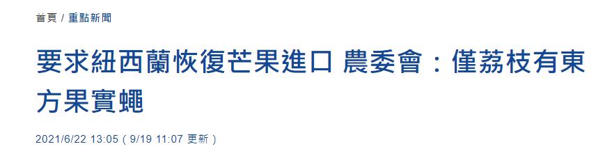 台灣芒果有望恢復銷往新西蘭,民進黨又扯大陸……香港新聞網12月16日電 台媒報道,等了超過半年時間,新西蘭同意重新開放台灣芒果輸入,但有蟲害的荔枝仍然被禁。結果,“啥事都要扯上大陸”的民進黨當局,又開始借題發揮,試圖以此抹黑大陸暫停進口有蟲害的台灣鳳梨、釋迦(番荔枝)、蓮霧。