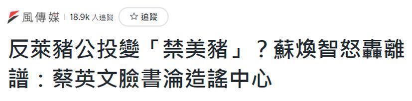 帶頭變造提案:“反萊豬”變“禁美豬”,蔡英文臉書被批淪為造謠中心分享到: