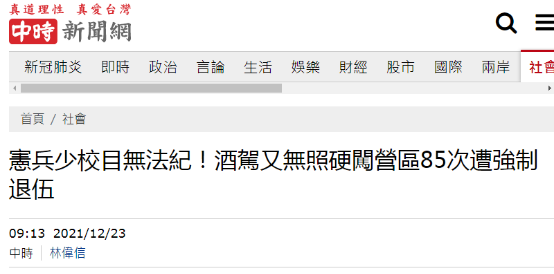 台媒:酒駕又無照駕駛硬闖營區85次,台灣一軍官被強制退伍分享到: