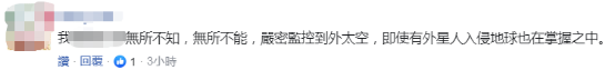 還有人諷刺台防務部門“無所不知、無所不能”,“嚴密監控到外太空,即使有外星人入侵地球也在掌握之中。”