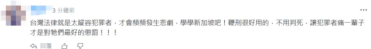 也有網友直言,“台灣法律就是太縱容犯罪者,才會頻頻發生悲劇”。↓