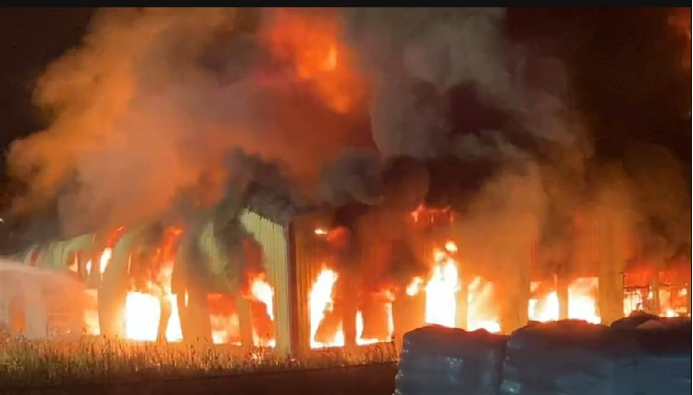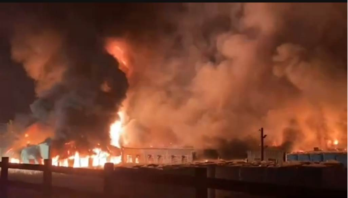 彰化花壇白沙村一處塑膠工廠28日深夜發生大火,廠房快速陷入全面燃燒。圖源:台灣“中時新聞網” 報道提到,彰化縣芬園鄉27日下午也有一塑膠鞋底工廠發生大火,消防員直到28日凌晨才撲滅火勢,28日晚同縣花壇鄉的工廠又發生火災,且火勢迅速蔓延、工廠陷入火海,也讓當地消防人員疲於奔命。 【編輯:胡雪石】